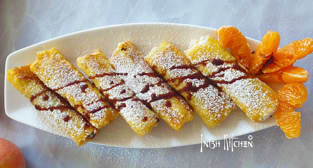 Pan on low to medium flame. Dip the rolls into the egg batter and place it into the hot pan. Follow the same process for all the rolls. Keep turning until it's golden on all the sides.
